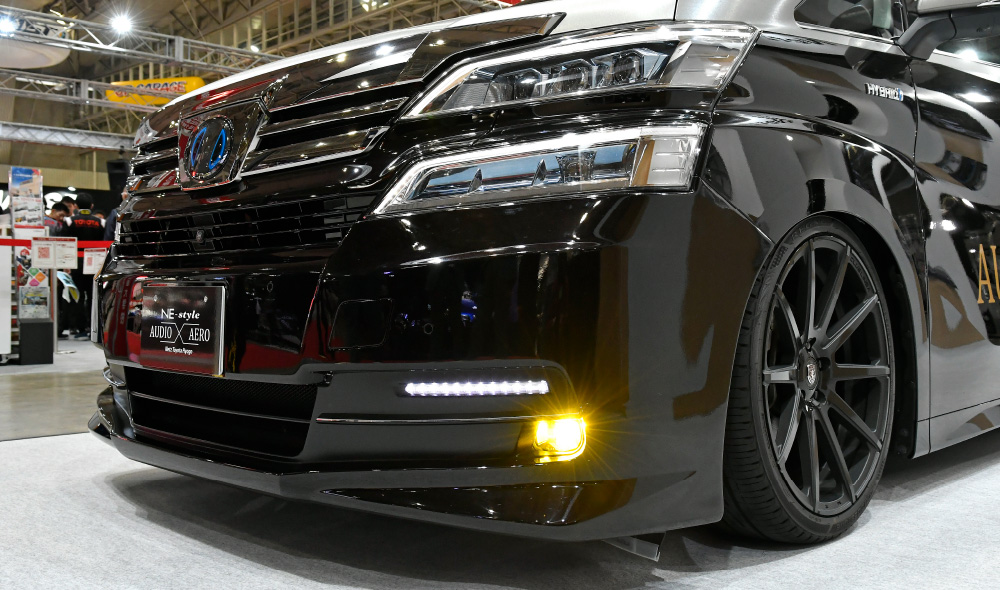 受賞車両「VELLFIRE NE-Style Ver.2」は圧倒的な存在感を誇るVELLFIREをさらに昇華させるべく、フロントバンパーをメインにカスタムした大人テイストな風貌が際立つ一台。エッジの効いた各部のキャラクターライン、LEDやフォグランプの光をさらに美しく輝かせるステンレスプレート…。派手さのある純正バンパーのイメージを一新し、シンプルな中にもさり気ない主張を感じさせる上質な仕上がりとなっています。