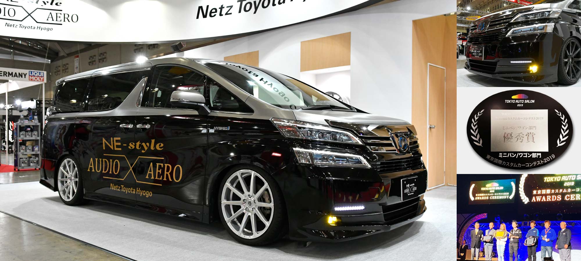世界最大級のカスタムカーの祭典「東京オートサロン2019」で行われた「東京国際カスタムカーコンテスト」ミニバン・ワゴン部門において「VELLFIRE NE-Style Ver.2」が 栄えある“優秀賞”に輝きました。